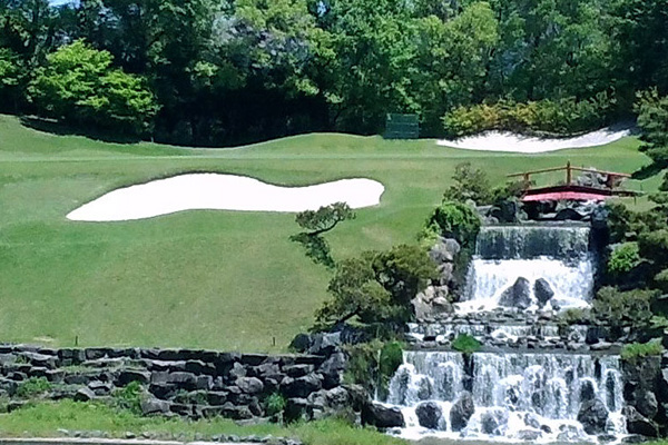 フェアウェイにアンジュレーションがあり、グリーン周りにバンカーが多く戦略性に富んだコース。アウトは6番滝越えの名物ショートホールがあり、9番ホールは3段グリーンになっておりトリッキーなホールが多い。インはフェアウェイも広くのびのびと打てるがグリーンの面積が大きく難度が高い。17番は池とバンカーに囲まれたミドルホール。